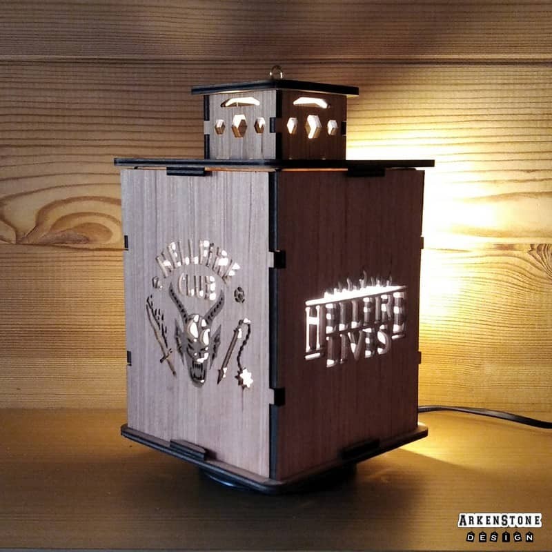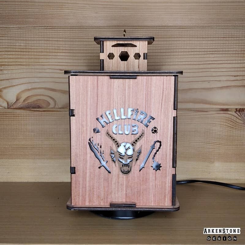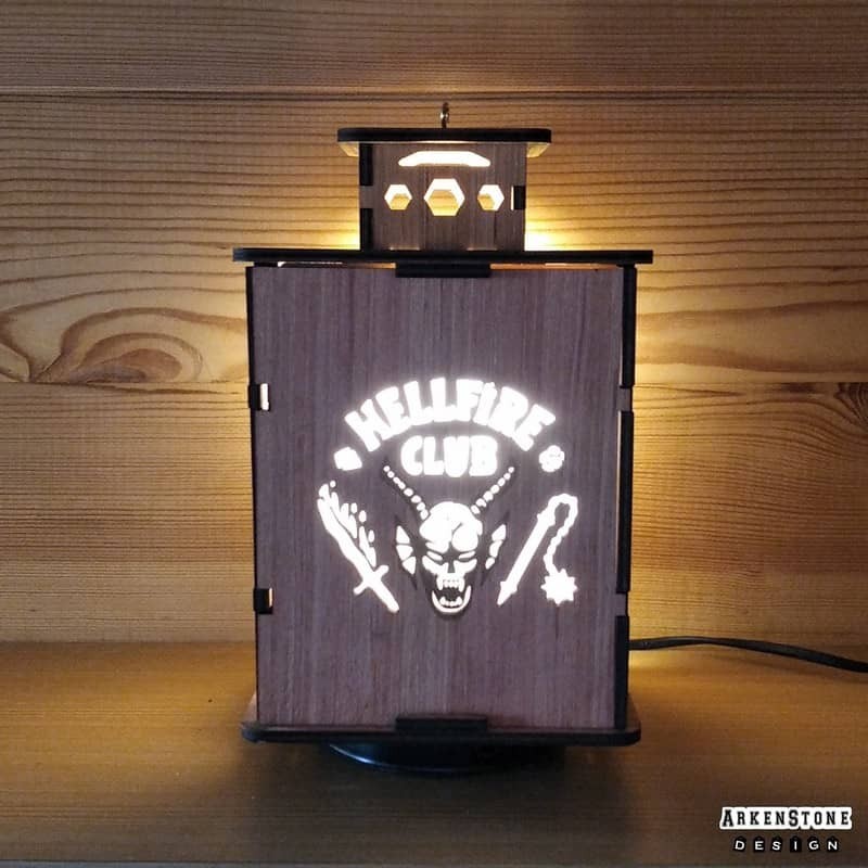 Une lanterne aux motifs inspirés des années 80, plongeant vos soirées dans une atmosphère mystérieuse et rétro. Retrouvez le logo du Hellfire Club. Une ambiance à la fois nostalgique et captivante, parfaite pour les fans de l’Upside Down !