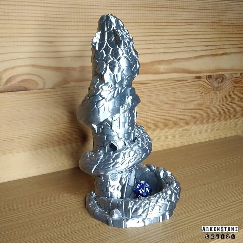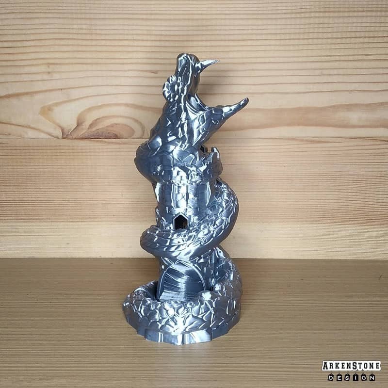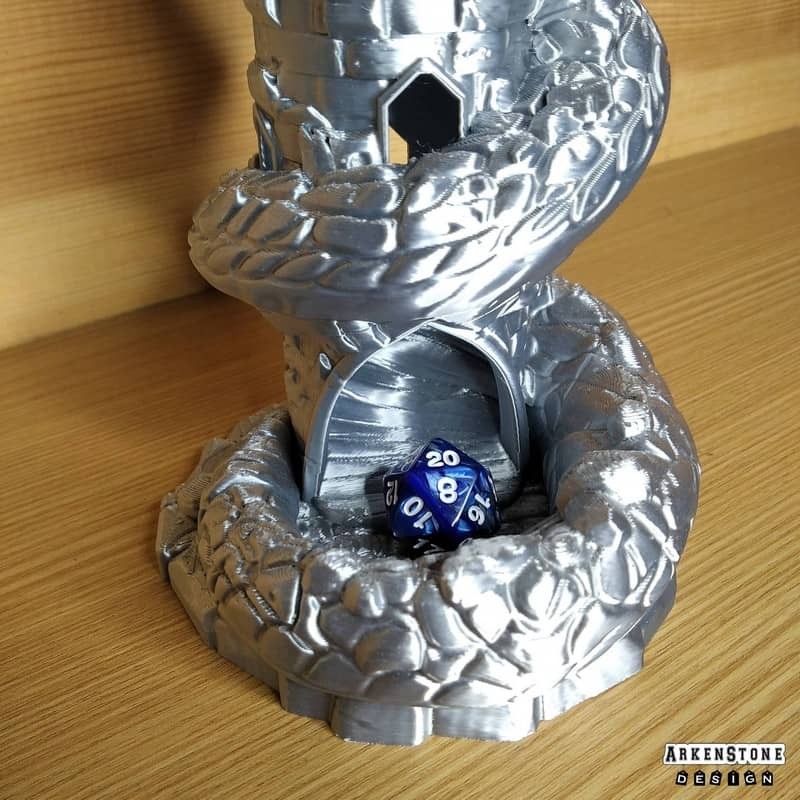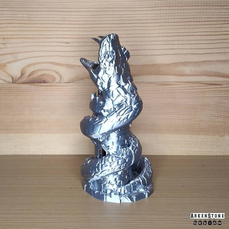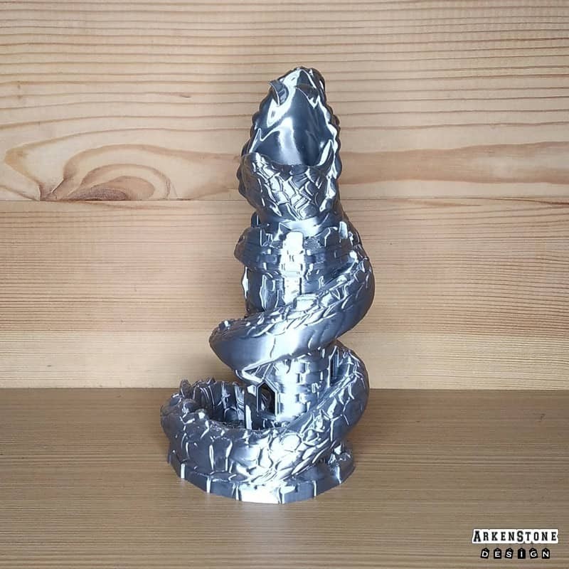 Plongez dans l'univers fantastique avec cette tour à dés unique, représentant une tour avec un Basilic enroulé autour. Transformez vos soirées de jeu de rôle en moments inoubliables grâce à son design captivant et son utilité pratique. Facile à intégrer sur un bureau, une table de jeu de rôle ou même une étagère, elle apportera une touche geek et élégante à votre espace. Un cadeau parfait pour un proche passionné ou pour vous offrir un objet aussi ludique que décoratif.