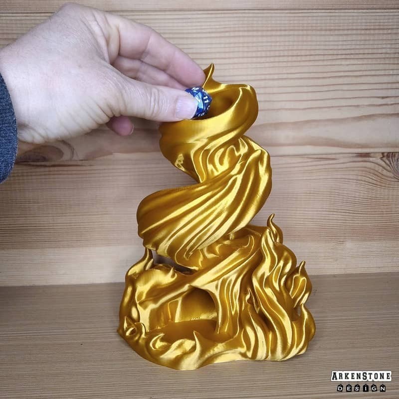 Plongez dans l'univers fantastique avec cette tour à dés unique, représentant un tourbillon de flamme. Transformez vos soirées de jeu de rôle en moments inoubliables grâce à son design captivant et son utilité pratique. Facile à intégrer sur un bureau, une table de jeu de rôle ou même une étagère, elle apportera une touche geek et élégante à votre espace. Un cadeau parfait pour un proche passionné ou pour vous offrir un objet aussi ludique que décoratif.